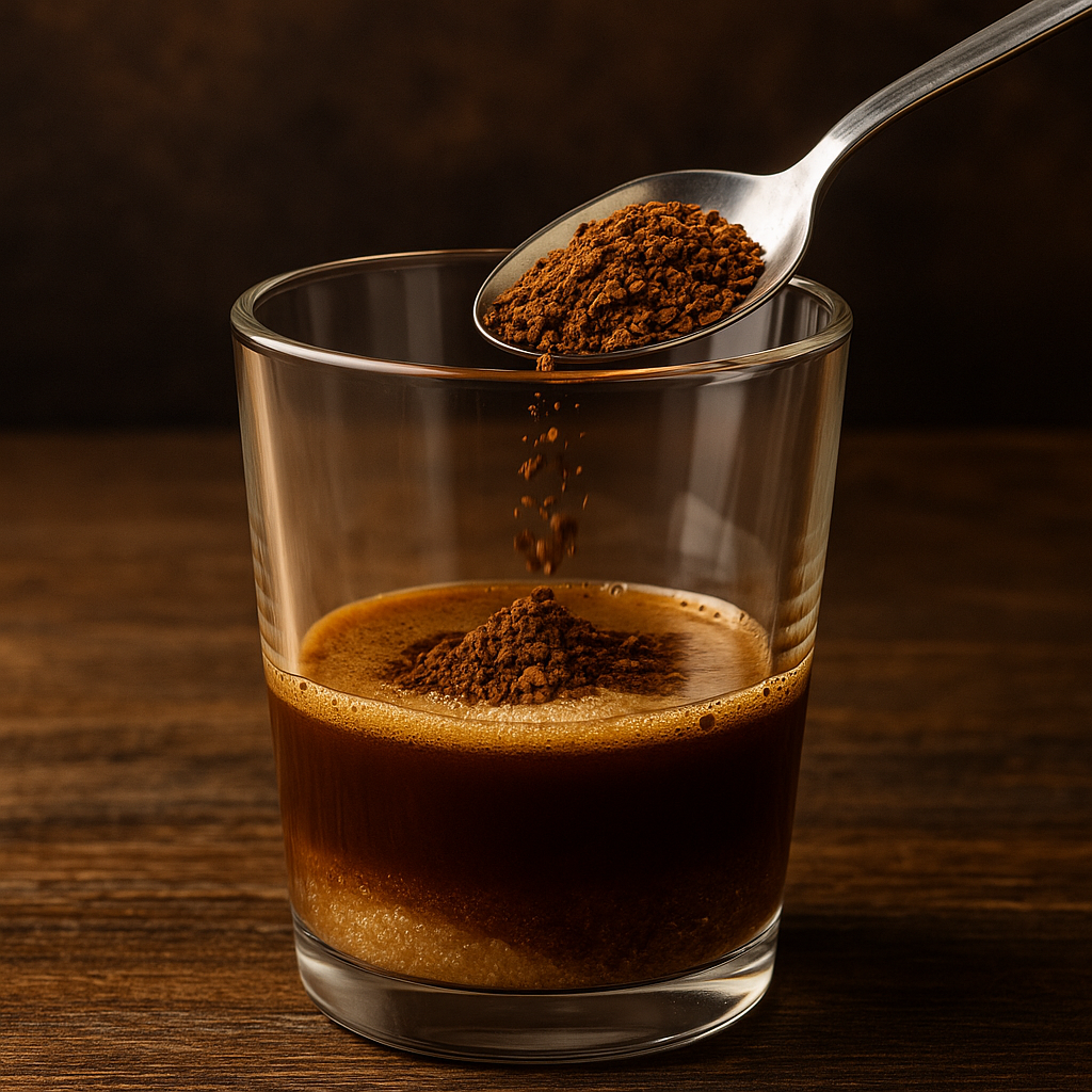 Combine the instant coffee, brown sugar, and cold water in a cup or shaker.